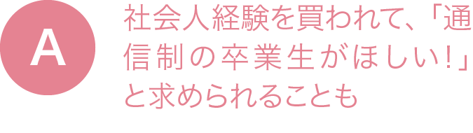 保育士や幼稚園教諭は、子どもはもちろん、親御さんとも直接関わる機会が多い職種。子育てに不安を抱える親御さんとのやりとりでは、保育者としての経験とコミュニケーション力が重要になります。実際、新卒の若い保育者にはない社会人経験を買われて、実習先から「通信制の卒業生がほしい!」と求められることもありますよ。