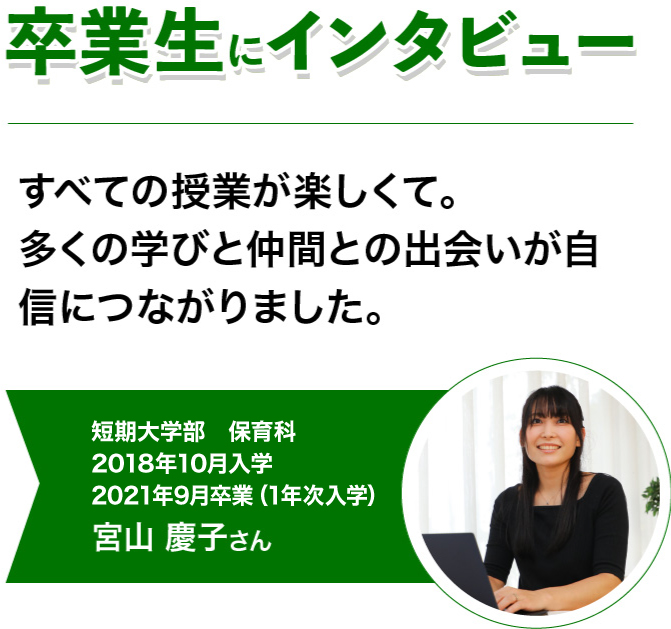 スクーリングで励ましあい、支えられる仲間をつくれたからこそ、他の通信講座では続かなかった私でも卒業することができました。聖徳での学びは皆さんにとってもかけがえのないものになりますよ。